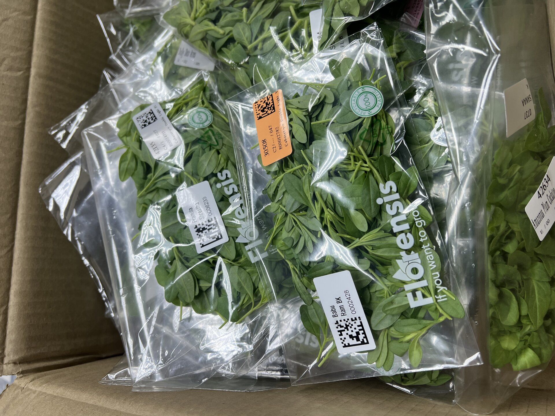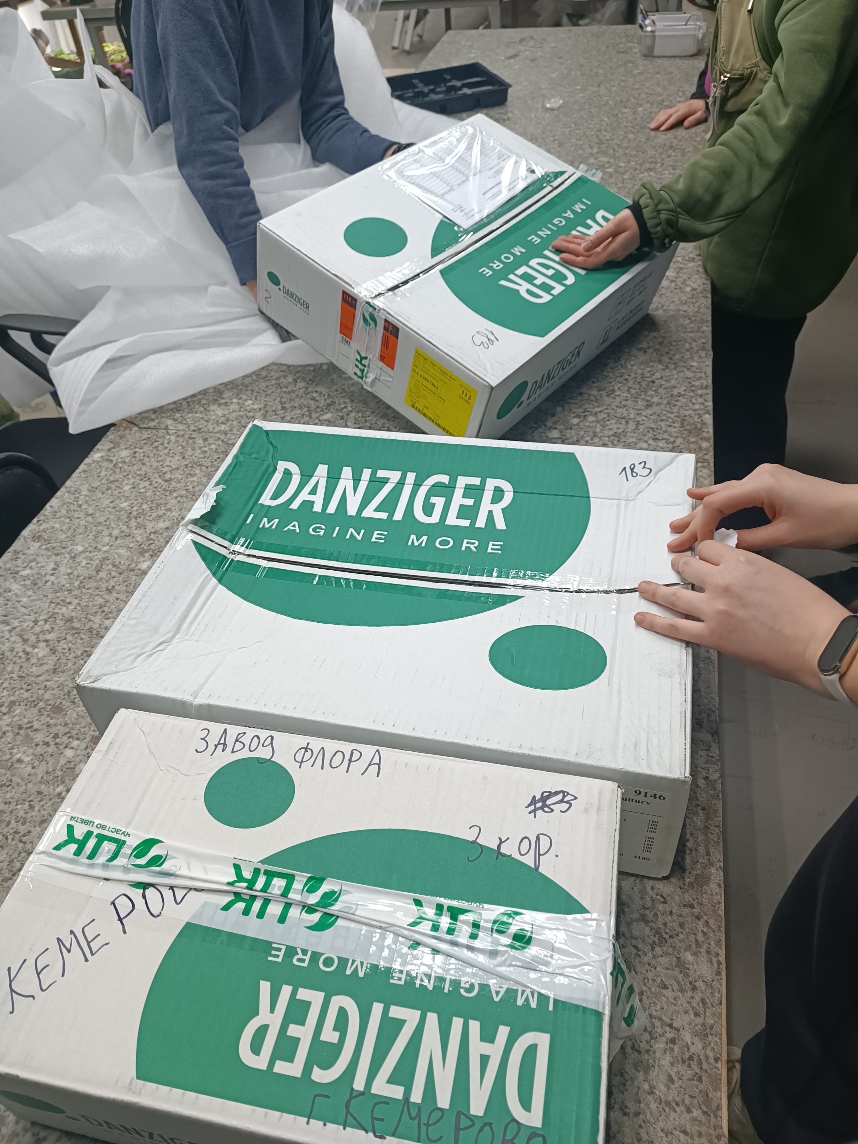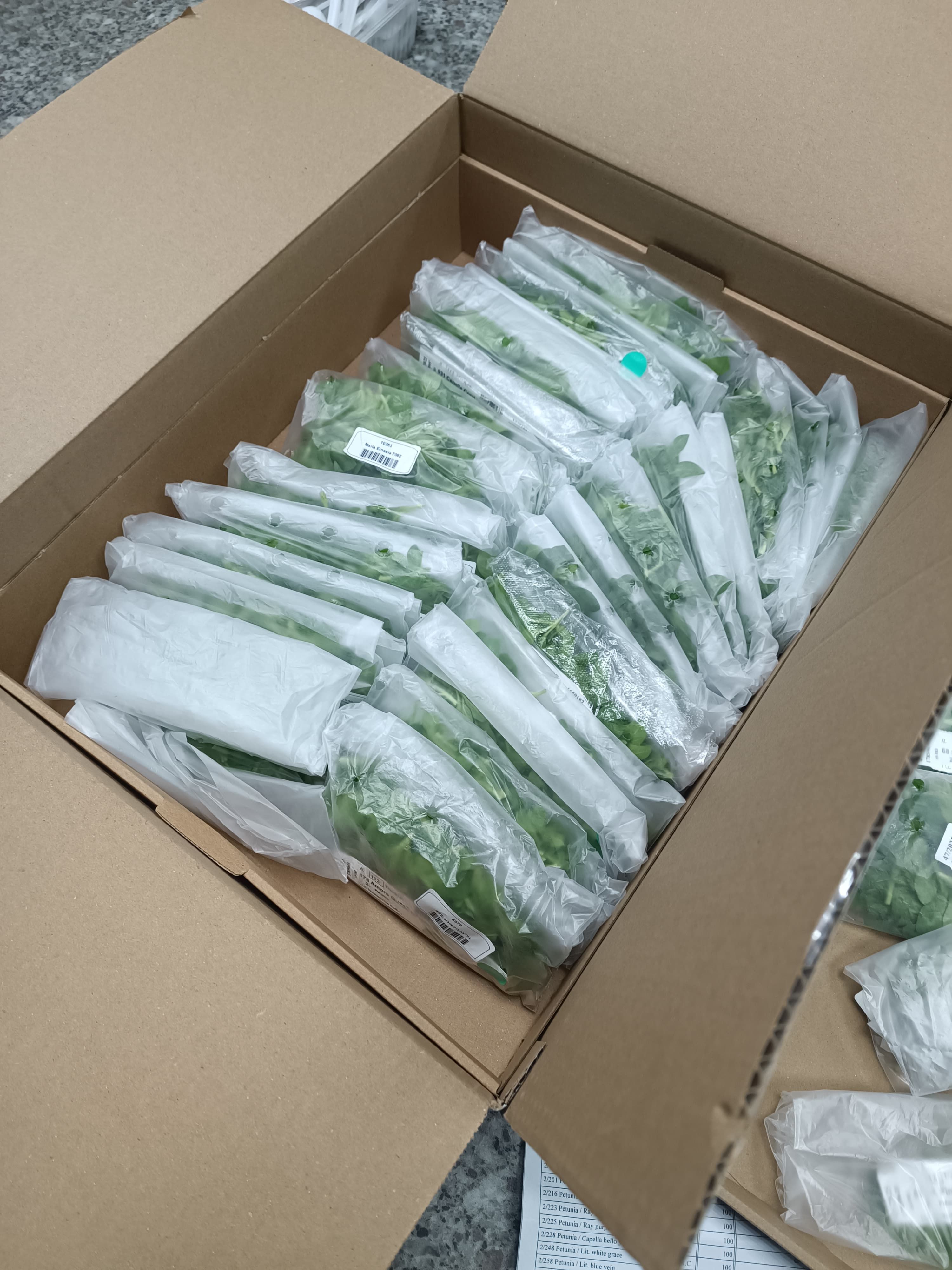 Двойная мощь: мы работаем напрямую с обеими голландскими компаниями и получаем регулярные поставки свежайших черенков. Фирменные коробки Dümmen Orange с узнаваемым оранжевым логотипом и пакеты Florensis с QR-кодами прослеживаемости — вот так выглядит профессиональная логистика мирового уровня. От лаборатории селекции в Нидерландах до производства Завода ФЛОРА в Кемерово — за 48 часов.
