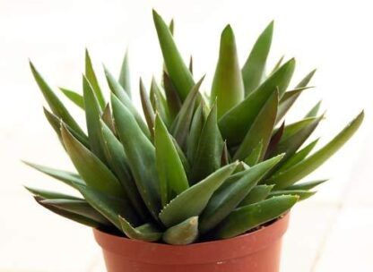 Алоэ Блэк Джем – декоративный суккулент с эффектной темной окраской, выделяющийся среди классических зеленых алоэ. Сорт формирует компактную розетку из плотных мясистых листьев насыщенного зеленого цвета с выраженным бронзово-коричневым оттенком, который усиливается при ярком освещении. Листья треугольной формы с мелкими шипами по краям создают графичный силуэт. Завод ФЛОРА выращивает этот эффектный суккулент в специализированных климатических камерах в Кемерово, применяя современные технологии контроля температуры, влажности и освещения. Благодаря 30-летнему опыту в растениеводстве мы гарантируем высокое качество посадочного материала и сохранение всех сортовых характеристик.