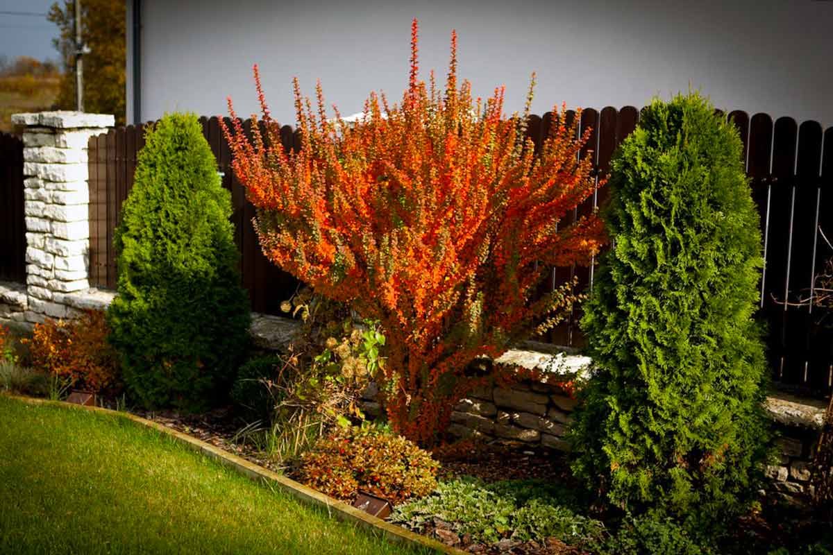 Барбарис Тунберга Золотистый Erecta (Berberis thunbergii ‘Aurea Erecta’) — уникальный декоративный сорт с компактной колонновидной формой кроны и яркой золотисто-желтой листвой. Выведен селекционерами для создания вертикальных акцентов в ландшафтном дизайне. Отличительная особенность сорта — строго вертикальные побеги, образующие плотную узкую крону без дополнительной формировки. Листья мелкие, округлые, насыщенного золотистого цвета с весны до осени, к концу сезона приобретают оранжево-красные оттенки. Завод ФЛОРА выращивает саженцы этого эксклюзивного сорта в современных теплицах с применением климат-контроля и автоматизированных систем полива, что гарантирует высокое качество посадочного материала и отличную приживаемость.