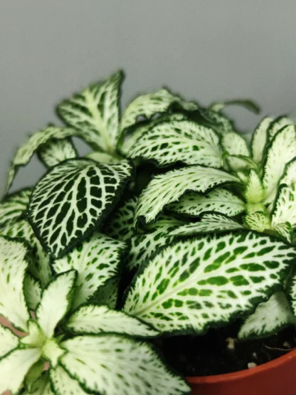 Фиттония Белая Форест Флейм (Fittonia White Forest Flame) – эффектный представитель семейства Acanthaceae, завоевавший популярность благодаря уникальной окраске листвы. Сорт характеризуется насыщенными зелеными листьями с контрастной белоснежной сеткой жилок, создающей впечатление морозного узора. Родом из тропических лесов Южной Америки, фиттония адаптирована для выращивания в комнатных условиях. Завод ФЛОРА производит укорененные черенки этого сорта в современных климатических камерах с точным контролем температуры и влажности, что обеспечивает генетическую чистоту и высокую декоративность растений. Компактная форма роста и медленное развитие делают White Forest Flame идеальным выбором для небольших пространств и миниатюрных композиций.