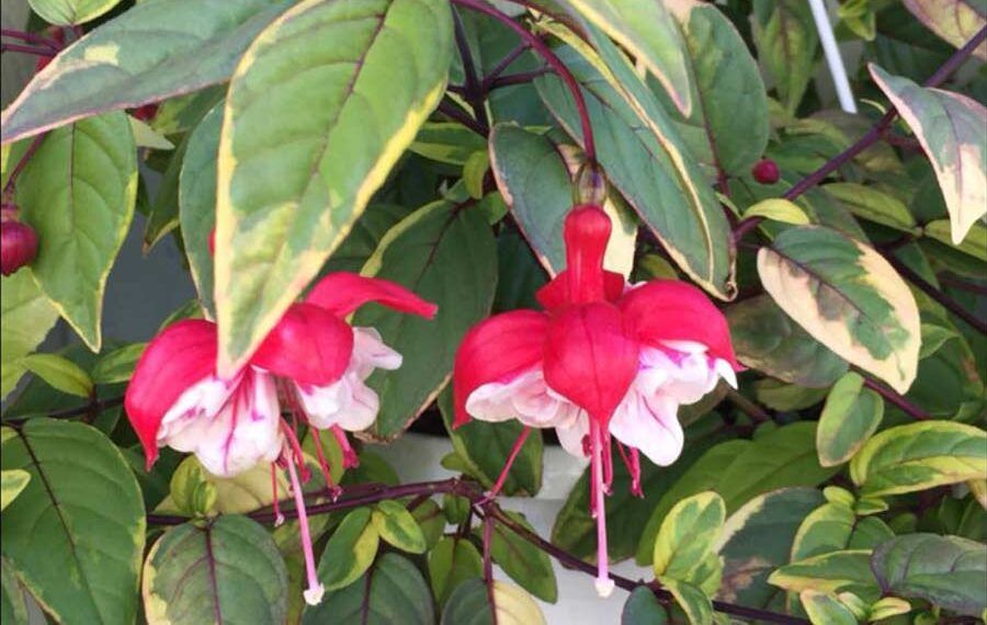 - Окраска: красные чашелистики, белые лепестки с розовыми прожилками