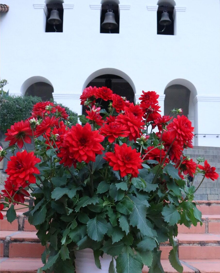 В смешанных цветниках георгин XXL Ruby Red занимает место на заднем или среднем плане, создавая яркий фон для более низких растений. Красный цвет привлекает бабочек и других опылителей, оживляя сад.