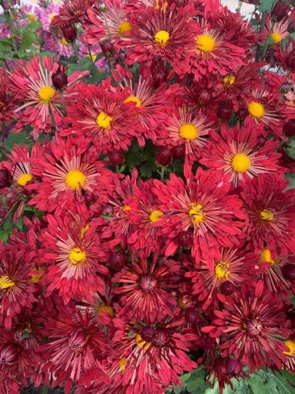 - Латинское название: Chrysanthemum × koreanum ‘Veresnievyi Biser’