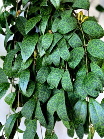 Эсхинантус Мраморный (Aeschynanthus marmoratus) – экзотическое тропическое растение из семейства Геснериевых, завоевавшее популярность благодаря уникальной декоративной листве. Родом из влажных тропических лесов Юго-Восточной Азии, это растение отличается эффектным мраморным рисунком на листьях – сеть светлых прожилок создает неповторимый узор на темно-зеленом фоне. Завод ФЛОРА выращивает эсхинантусы в специальных климатических камерах с контролируемыми параметрами температуры и влажности, что обеспечивает получение здорового посадочного материала высокого качества. Растение формирует изящные ниспадающие побеги, что делает его идеальным выбором для ампельного выращивания в интерьере.