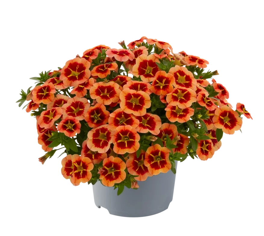 Калибрахоа Cabaret Compact Orange Star — современный сорт из серии Cabaret, созданный специально для контейнерного выращивания. Завод ФЛОРА предлагает неукорененные черенки этого эффектного растения, выращенные в профессиональных условиях с использованием климат-контроля и автоматизированных систем полива. Отличительная особенность сорта — яркие оранжевые цветки с выразительной звездчатой серединкой, создающие впечатляющий декоративный эффект. Компактная форма куста делает Orange Star идеальным выбором для ограниченных пространств: балконов, террас, небольших садовых композиций. Растение формирует плотный каскад побегов с многочисленными цветками диаметром 3-4 см, создавая эффект цветущего облака.