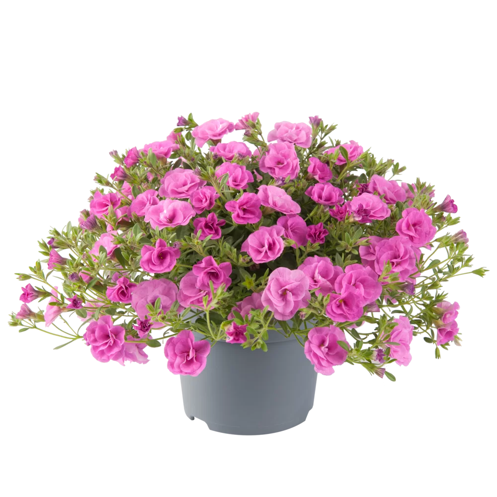 Калибрахоа Cabaret Double Pink — премиальный сорт с уникальными махровыми цветками, который станет настоящим украшением любого сада или балкона. Этот представитель семейства Solanaceae выделяется среди других калибрахоа своими густомахровыми цветками насыщенного розового оттенка, напоминающими миниатюрные садовые розы. Сорт был специально выведен для создания эффектных каскадных композиций и отличается продолжительным обильным цветением. Завод ФЛОРА выращивает неукорененные черенки Cabaret Double Pink в специализированных климатических камерах с применением современных технологий контроля температуры, влажности и освещения, что гарантирует получение здорового посадочного материала с отличной приживаемостью.