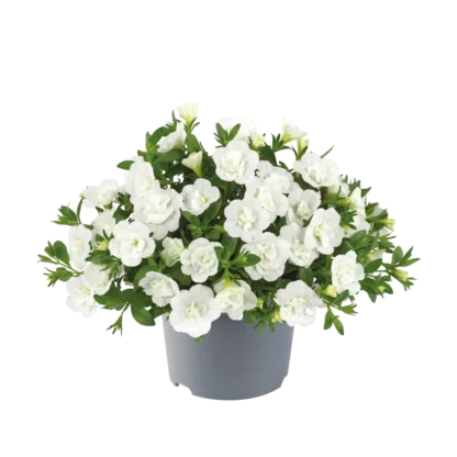 Калибрахоа Cabaret Double White Impr. – это усовершенствованная махровая форма популярной ампельной культуры, выведенная специально для профессионального выращивания и декоративного садоводства. Сорт относится к серии Cabaret, известной своими крупными густомахровыми цветками с безупречной формой. Белоснежные соцветия диаметром до 4 см напоминают миниатюрные розы и создают роскошное облако цветения на изящных каскадных побегах. Завод ФЛОРА выращивает этот эксклюзивный сорт в современных климатических камерах с точным контролем условий, что гарантирует высокое качество посадочного материала и сохранение всех сортовых характеристик.