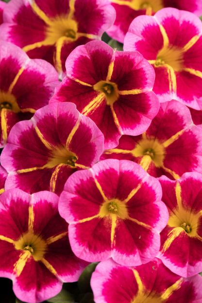 Калибрахоа Caliloco Starfire Rose – представитель серии Caliloco, выведенной специально для профессионального выращивания и любительского садоводства. Сорт отличается насыщенной розово-малиновой окраской лепестков с выразительным звездчатым узором более светлого оттенка в центре цветка. Компактная каскадная форма роста и обильное цветение делают этот сорт идеальным для создания эффектных вертикальных композиций. Завод ФЛОРА выращивает неукорененные черенки этого сорта в специализированных климатических камерах, обеспечивая генетическую чистоту и высокое качество посадочного материала. Растения формируют плотные кустики с многочисленными побегами, сплошь покрытыми некрупными цветками колокольчатой формы.