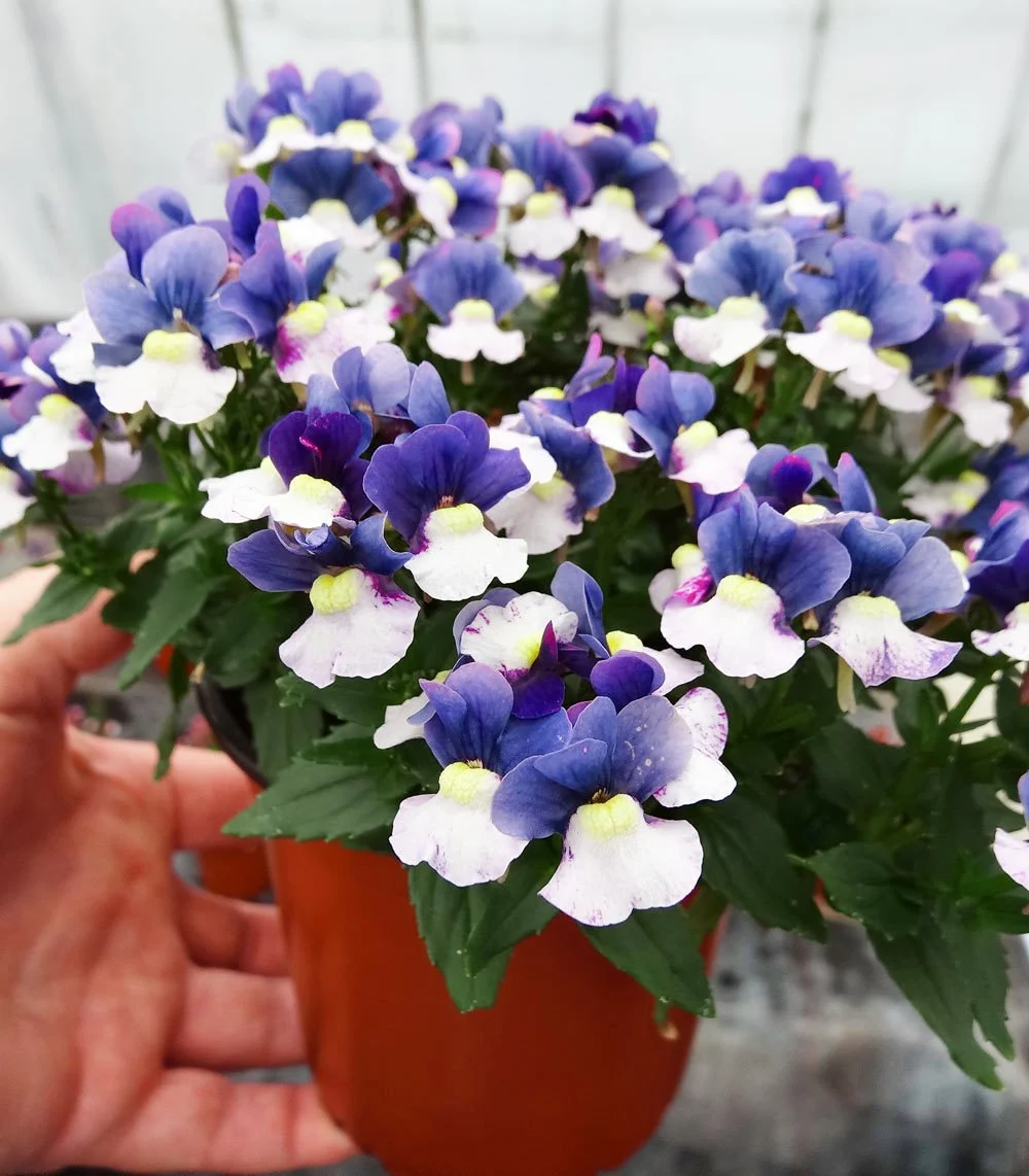 Немезия Mareto Blue & White – изысканный декоративный сорт с уникальной двухцветной окраской цветков, сочетающей нежные голубые и белые тона. Этот представитель семейства Scrophulariaceae был специально отобран для производства на Заводе ФЛОРА благодаря своим исключительным декоративным качествам и стабильности сортовых признаков при вегетативном размножении. Сорт Mareto Blue & White отличается обильным и продолжительным цветением, формируя плотные соцветия с изящными двугубыми цветками. Компактная форма куста и непрерывное образование новых бутонов делают этот сорт идеальным выбором как для профессионального озеленения, так и для частных садов.