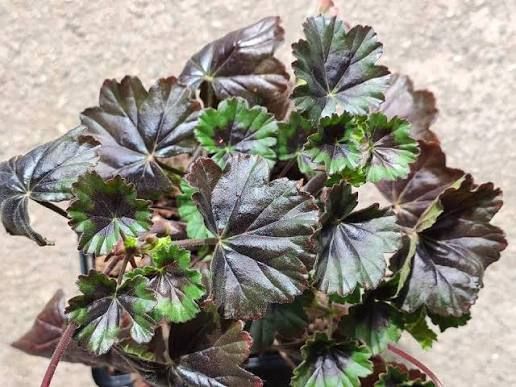 - Окраска листвы: тёмно-бордовая, почти чёрная с более светлой или тёмной зоной в центре