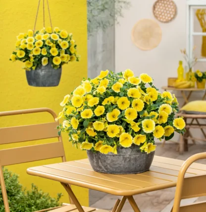 Петуния Bee’s Knees Yellow – универсальное растение для создания ярких солнечных акцентов в саду и на балконе. Идеально подходит для выращивания в подвесных кашпо, балконных ящиках, напольных контейнерах и вазонах. Прекрасно смотрится в монопосадках, создавая эффектные желтые каскады, а также в композициях с петуниями других оттенков – фиолетовыми, розовыми, белыми. Отлично сочетается с калибрахоа, лобелией, бакопой и декоративнолистными растениями. Может использоваться для оформления террас, веранд, входных групп, а также в городском озеленении. Подходит для профессионального ландшафтного дизайна и частного садоводства.