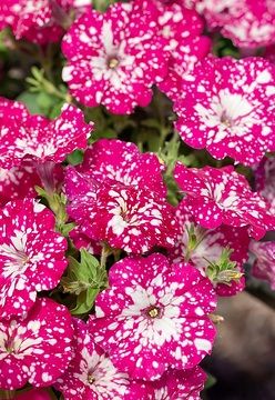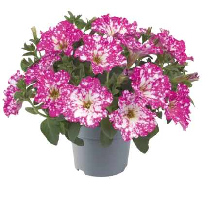 Петуния Dolly Dots Magenta Comet – современный гибридный сорт из серии Dolly Dots, созданный специально для контейнерного выращивания и декоративного оформления. Сорт выделяется уникальной окраской цветков: насыщенный пурпурно-малиновый фон украшен белыми штрихами и крапинками, напоминающими комету в ночном небе. Завод ФЛОРА выращивает этот эффектный сорт в современных климатических камерах с использованием профессиональных технологий вегетативного размножения, что гарантирует сохранение всех сортовых характеристик. Компактная форма куста и обильное цветение делают этот сорт идеальным выбором для создания ярких композиций на балконах, террасах и в садовых контейнерах. Растение формирует плотный каскад из цветущих побегов, сохраняя декоративность в течение всего сезона.