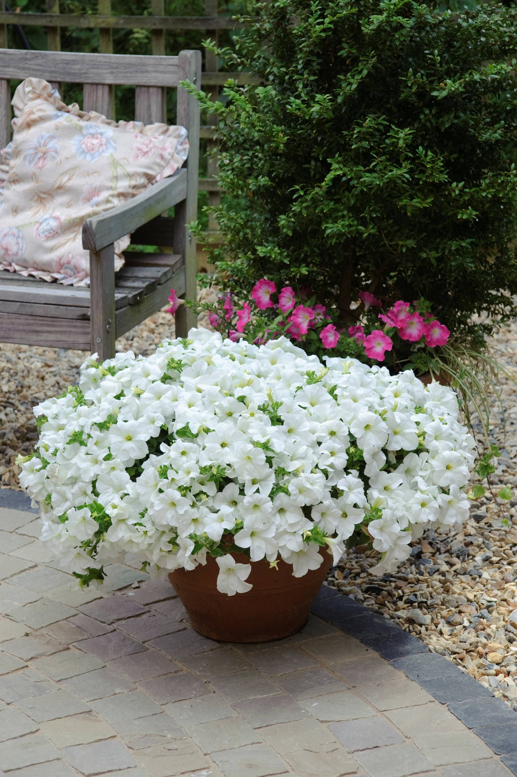 Петуния Fanfare White – это великолепный сорт с чистыми белоснежными цветками, выращенный на современном производстве Завода ФЛОРА в Кемерово. Сорт получен методом вегетативного размножения, что гарантирует полное сохранение всех декоративных качеств и сортовых признаков. Отличается обильным и продолжительным цветением, формируя плотный каскад белых цветков. Растение демонстрирует отличную устойчивость к неблагоприятным погодным условиям и сохраняет декоративность в течение всего сезона. Fanfare White пользуется заслуженной популярностью у ландшафтных дизайнеров и садоводов-любителей благодаря своей универсальности и неприхотливости.