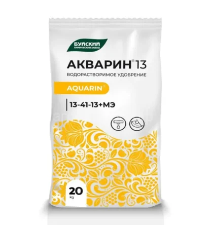 Акварин (13) — это высокоэффективное водорастворимое комплексное удобрение с уникальной формулой NPK 13-41-13, обогащенное комплексом микроэлементов. Особенность препарата — повышенное содержание фосфора (41%), что делает его незаменимым для стимуляции корнеобразования, развития мощной корневой системы и обильного цветения. Завод ФЛОРА поставляет профессиональную агрохимию проверенных производителей, тестируя каждый препарат на собственном производстве в Кемерово. Удобрение выпускается в форме полностью растворимого кристаллического порошка, что обеспечивает быстрое усвоение питательных веществ растениями. Подходит для всех видов декоративных, овощных, плодово-ягодных и цветочных культур на всех стадиях развития.